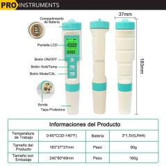 Mantené la calidad del agua en óptimas condiciones con el Medidor 7 en 1 Pro Instruments COM‑600. Mide de forma rápida y precisa: pH, TDS, EC, salinidad, gravedad específica (SG), ORP y temperatura. Diseñado para piscinas, acuarios, agua potable y más. Pantalla LCD de gran tamaño con retroiluminación, función ATC (compensación automática de temperatura) e impermeabilidad IP67.