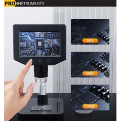 El Microscopio Digital Pro Instruments P220 está diseñado para ofrecer una experiencia de observación moderna, práctica y totalmente autónoma. Gracias a su pantalla LCD HD de 4.3 pulgadas, podés visualizar cada detalle directamente sin conectarlo a una PC o celular. Su zoom digital de 50 a 1000X permite ampliar texturas, circuitos y superficies con excelente claridad, y sus 8 luces LED regulables garantizan una iluminación uniforme en cualquier entorno.