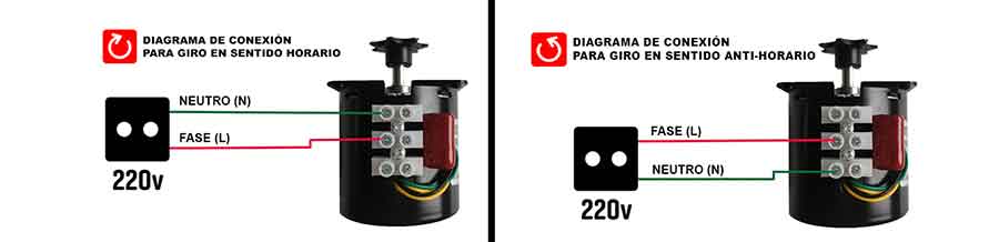 👉 Para invertir el sentido de giro, simplemente intercambiá la posición de los cables en las bornas indicadas.